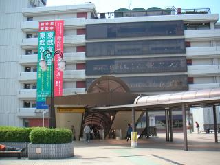 駅舎は、東武百貨店と一体化していて、駅前広場の地下は、有料の大きな市営駐車場があります。