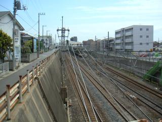 向こうに小さく東船橋駅が見えます。