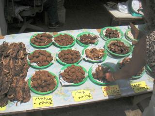 こんな風に、うこんやサトイモとか、地元産の馬鈴薯を売るおばさんが何人もいました。
