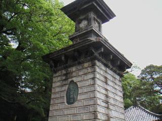 仁王門から大本堂へ登る石段の途中に、こんな立派な時計台みたいな石塔が聳えます。
