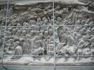釈迦堂の周囲の壁にはこのような百羅漢の彫刻が施されています。