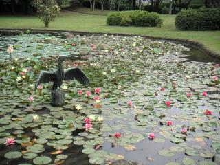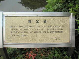 ここの蓮の花は、アメリカ産と交配して作られたそうで、東宮御所で時の皇太子夫妻もご覧になられたそうで、そのことにちなんで、「舞妃蓮」と名づけられたそうです。