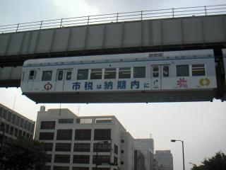 市役所前を走るモノレールには、納税の呼び掛けが書かれていました。