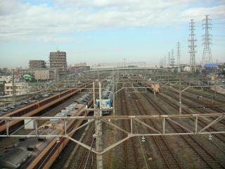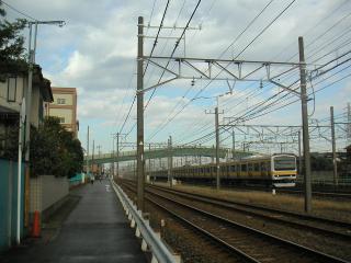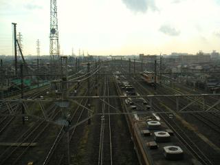 陸橋の上から、幕張駅方向を見ています。