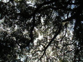 神社の境内はどこかしこも大きな大木に囲まれて、木の葉の屋根に覆われていました。