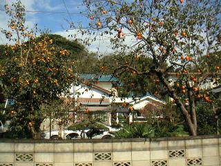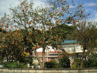 右も左も、民家の庭先に、柿木や蜜柑の木が実をみのらせています。