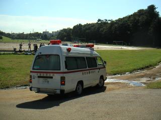 ここでちょっとしたハプニングがありました。突然、救急車が到着したのです。 |