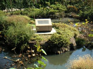 こちらは、グラウンドの敷地から発見された縄文時代のハスの実を大賀一郎博士が開花させたことから名づけられた「大賀ハス」の発祥の地碑です。千葉公園をはじめとして、世界各地にその種が配られて美しい花を咲かせています。 |