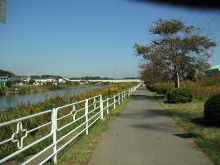 花見川のサイクリングロードに出ました。上流方向を見ています。