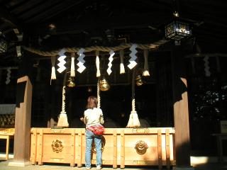 ちまき祭りが有名な神社だそうです。七五三でしょうか、白いはっぴに身を包んだ子供づれ家族が沢山、お払いの最中でした。