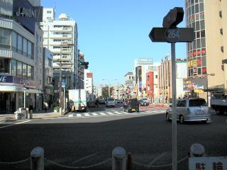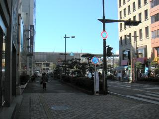 駅前から千葉街道に出て、駅舎を振り返りました。