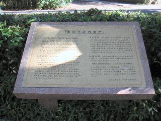市川は明治からの文豪ゆかりの地でもあり、真間史蹟保存会によって、このような記念の立板が作られて「文学の道」と名づけられた桜土手公園沿いの道に数多く立てられています。