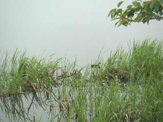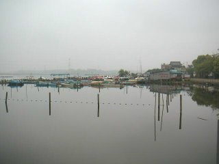 これは、沼の畔にある遊覧船乗り場です。あいにくの天気なので、利用する人は見掛けませんでした。釣り船もここから出ているようです。