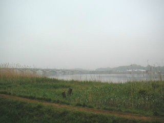 | 手賀沼大橋の袂から船橋方向にスナップしました。この上は、船取線が走っています。ここは、家族連れで幾度も渡った橋です。 |