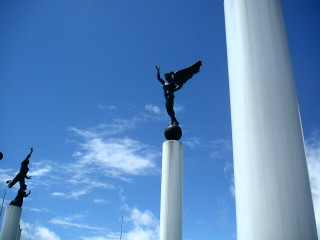 | 青い空に良く映えます。(「愛のモニュメント」という題だそうです) |